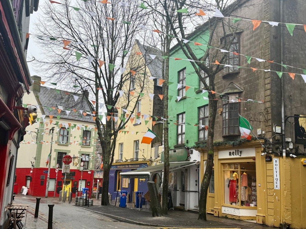 The following morning, the rain had finally let up. Megan, Avery, and I slipped out early to explore Galway before the day began. We wandered through the Latin Quarter, where colorful storefronts, lively cafés, and street performers brought the narrow lanes to life. Even in the quiet of the morning, you could feel the energy of the place and imagine how vibrant it must be at full swing.