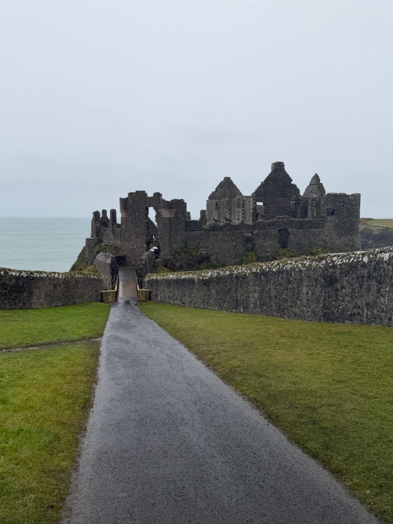 Our final stop along the coast was Dunluce Castle, perched dramatically on the edge of a cliff. Built in the 13th century, the castle later became the stronghold of the powerful MacDonnell clan. Its setting is as dramatic as its history, with parts of the structure once collapsing into the sea during a storm, including, according to legend, the kitchen. Over the centuries, it witnessed battles, sieges, and decline before eventually being abandoned. Today, its ruins remain one of the most iconic and photographed sites in Northern Ireland. The wind and rain made for a quick visit, but even in those conditions, the castle was striking.