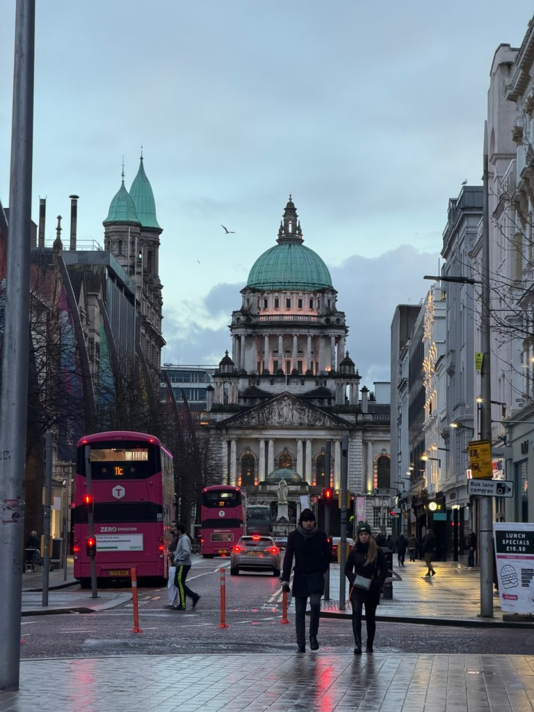 We wandered the city before stopping at White’s Tavern, the oldest pub in Belfast, a sprawling and historic pub with multiple rooms and a lively atmosphere. We found seats in an atrium area where live music was playing and stayed for a few songs and drinks.