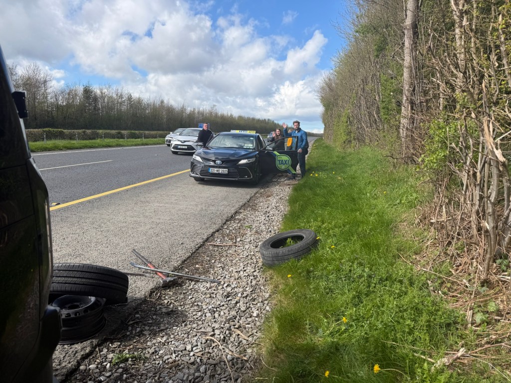 The next morning, we set off early for the airport, skipping breakfast to give ourselves plenty of time. That decision turned out to be crucial. About thirty minutes from the airport, we had another tire blowout, even worse than the first. We managed to pull over and called the rental company, who sent roadside assistance. After a long wait, help arrived, only for us to discover they had brought the wrong size tire.